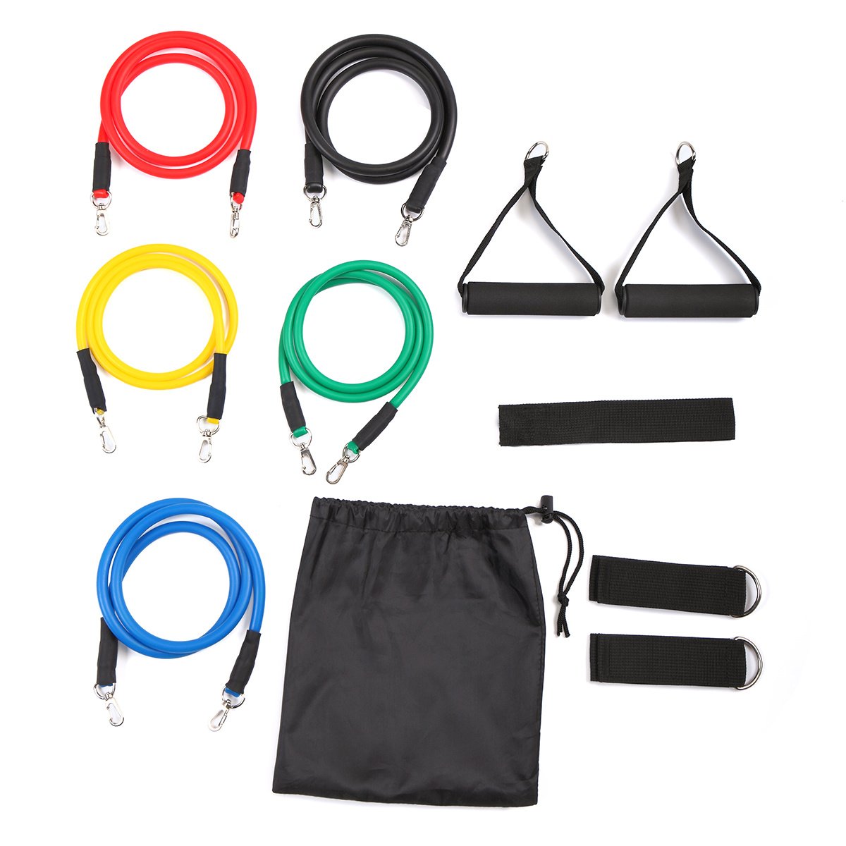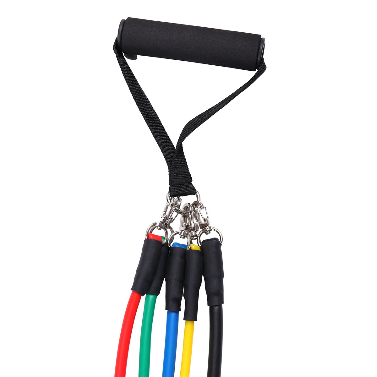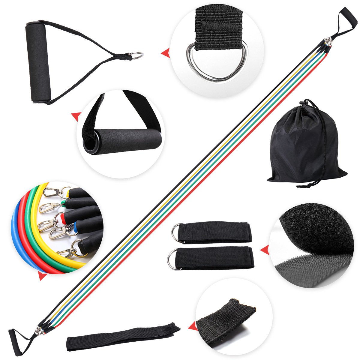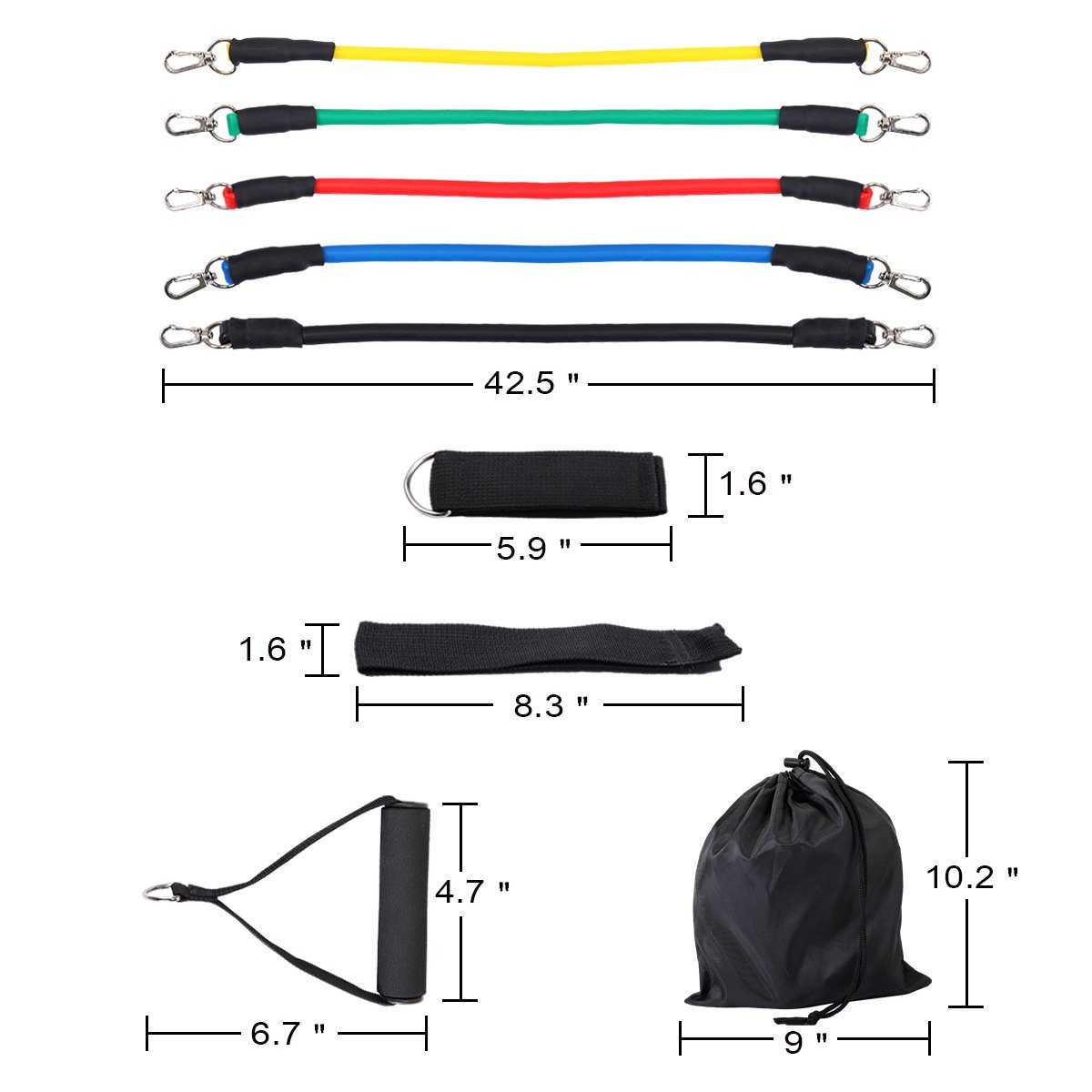 [Rich training kit]The product includes 5 resistance bands, 1 door anchor, 1 waterproof carrying bag, 2 cushioning handles, 2 ankle straps and 1 portable black storage bag;